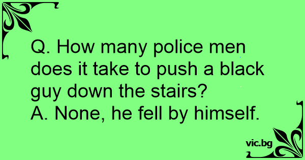 Q. How many police men does it take to push a black guy down the stairs?