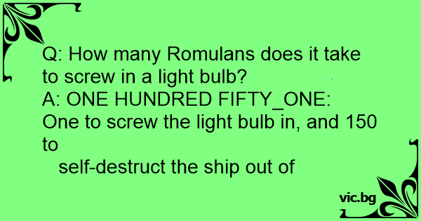 Q: How many Romulans does it take to sсrеw in a light bulb?