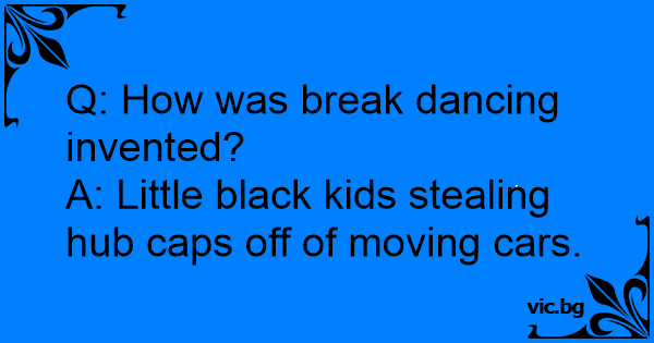 Q: How was break dancing invented? <br />A: Little black kids stealing hub caps off of moving cars.