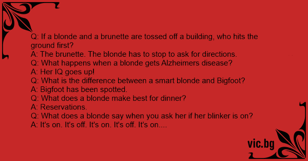 Q: If a blonde and a brunette are tossed off a building, who hits the ground first?
