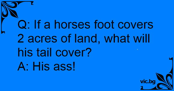 Q: If a horses foot covers 2 acres of land, what will his tail cover?