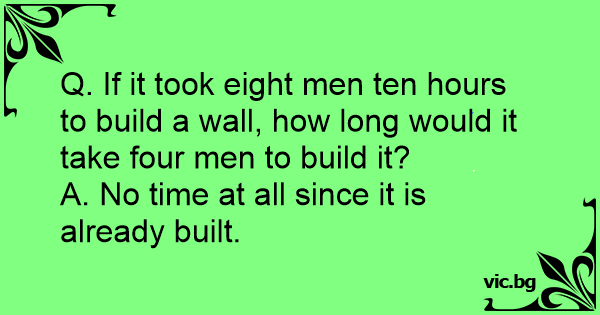 Q. If it took eight men ten hours to build a wall, how long would it take four men to build it?