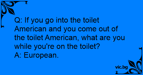 Q: If you go into the toilet American and you come out of the toilet American, what are you while you're on the toilet?