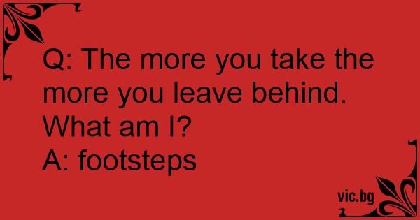 Q: The more you take the more you leave behind. What am I?