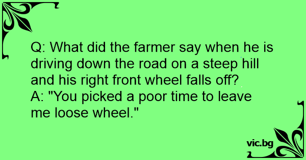 Q: What did the farmer say when he is driving down the road on a steep hill and his right front wheel falls off?