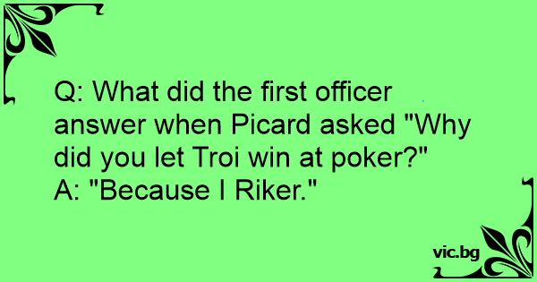 Q: What did the first officer answer when Picard asked "Why did you let Troi win at poker?"