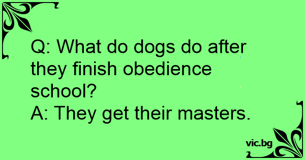 Q: What do dogs do after they finish obedience school?