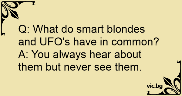 What do UFO's and smart blondes have in common? You hear about them all the time, but you never see one.