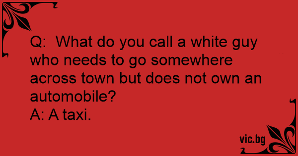 Q: What do you call a white guy who needs to go somewhere across town but does not own an automobile?