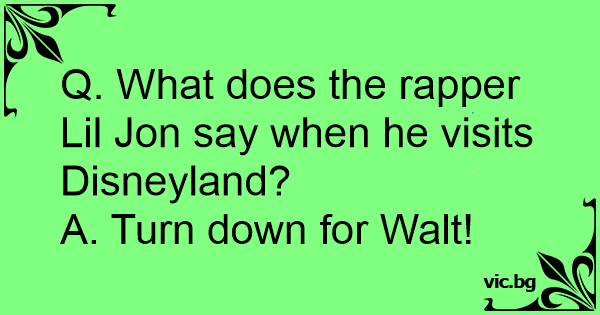 Q. What does the rapper Lil Jon say when he visits Disneyland?