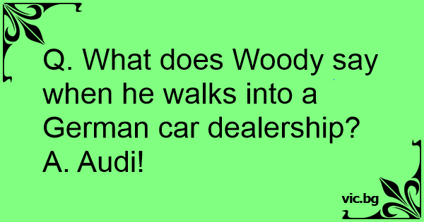 Q. What does Wооdy say when he walks into a German car dealership?