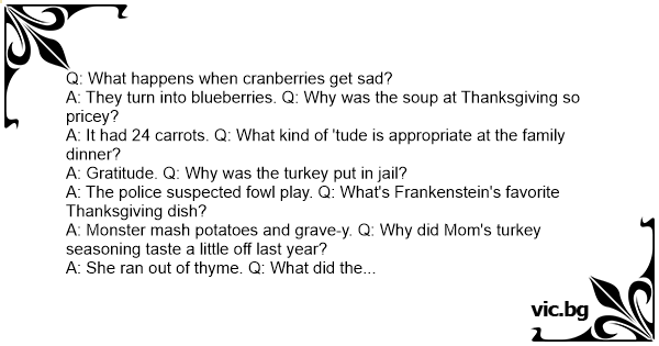 A: They turn into blueberries. Q: Why was the soup at Thanksgiving so pricey?