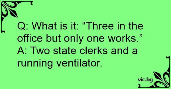 Was sind drei in einem Büro wobei einer arbeitet? - Zwei Beamte und ein Ventilator!
