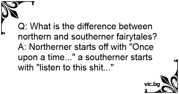 A: Northerner starts off with "Once upon a time..." a southerner starts with "listen to this shiт..."