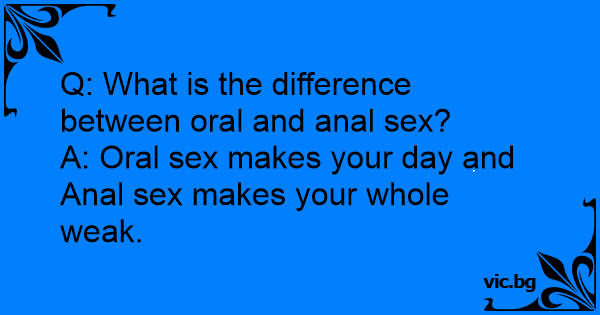 A: Оrаl sеx makes your day and Аnаl sеx makes your whole weak.