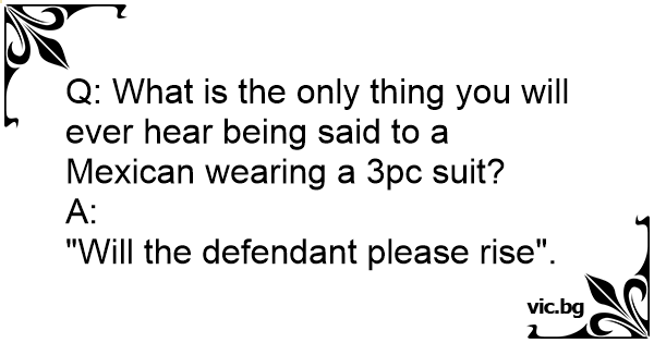 Q: What is the only thing you will ever hear being said to a Mexican wearing a 3pc suit?