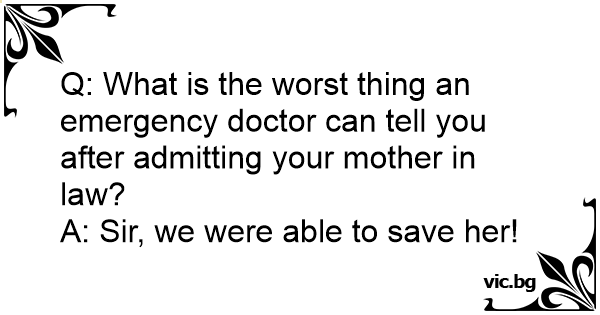 Q: What is the worst thing an emergency doctor can tell you after admitting your mother in law?<br />A: Sir, we were able to save her!
