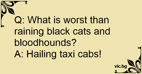 Q: What is worst than raining black cats and bloodhounds?
