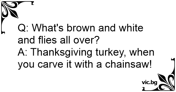 A: Thanksgiving turkey, when you carve it with a chainsaw!