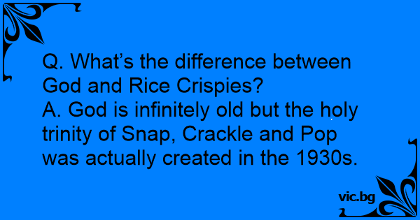 Q. What’s the difference between God and Rice Crispies?