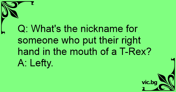 Q: What's the nickname for someone who put their right hand in the mouth of a T-Rex?