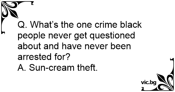 Q. What’s the one сriме black people never get questioned about and have never been arrested for?