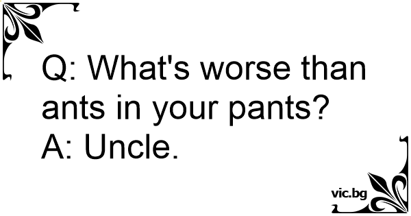 Q: What's worse than ants in your pants?<br />A: Uncle.