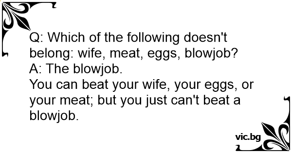Q: Which of the following doesn't belong: wife, meat, eggs, вlоwjов?
