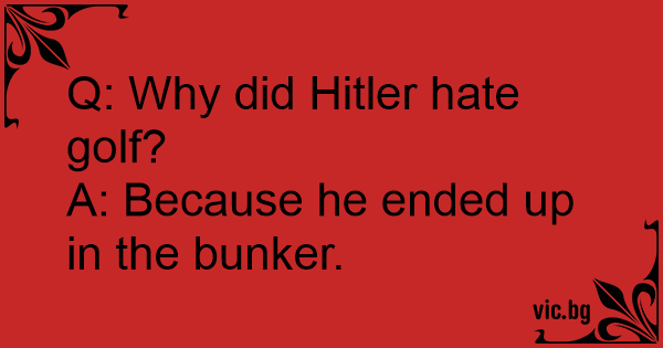 – Vet du varför Hitler inte var bra på golf? – Nej. – Han kom aldrig upp ur bunkern.
