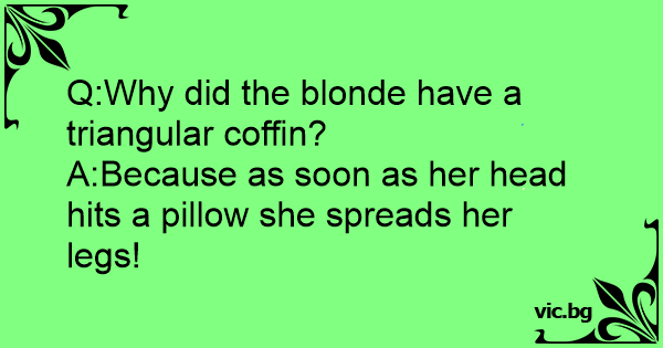 Why do blondes have triangular coffins? A: Every time their head hits the pillow their legs spread.