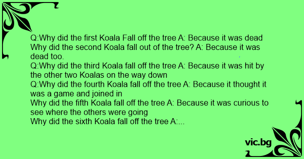 Q:Why did the first Koala Fall off the tree A: Because it was dead