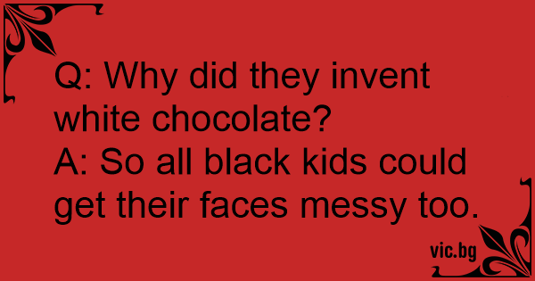 Varför uppfann man vit choklad? – För att negrarna inte ska bita sig i fingrarna när de äter choklad.