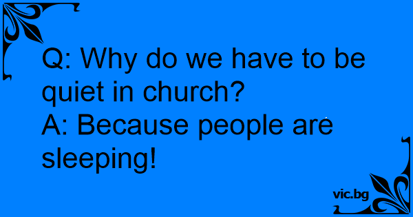 Sekmadieninės mokyklos mokytoja paklausė savo vaikų, beeinančių į bažnyčios susirinkimą: „Kodėl bažnyčioje būtina laikytis tylos?“ Viena guvi mergaitė atsakė: „Nes ten visi miega“.