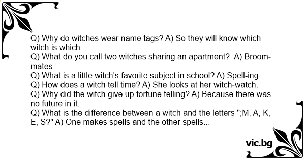 Q) Why do witches wear name tags? A) So they will know which witch is which.