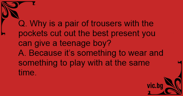Q. Why is a pair of trousers with the pockets cut out the best present you can give a teenage boy?