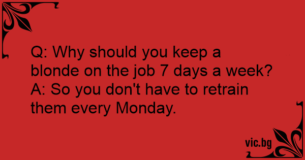 Varför jobbar blondiner 7 dagar i veckan? Så att man slipper återutbilda dom på måndag.