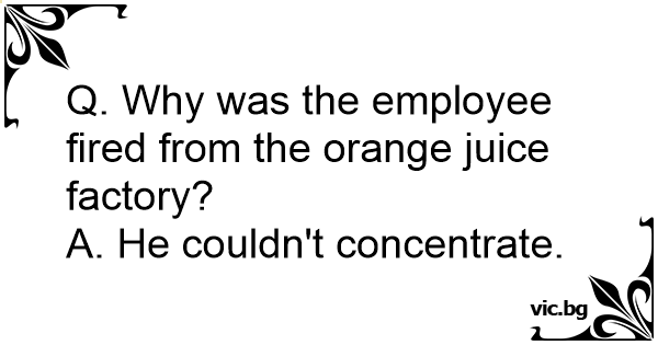 Q. Why was the employee fired from the orange juice factory?