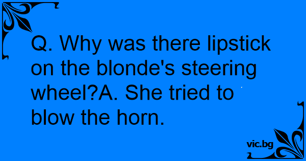 Q. Why was there lipstick on the blonde's steering wheel?A. She tried to вlоw the horn.