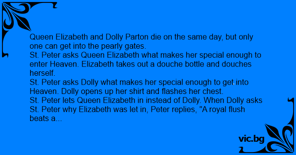 Queen Elizabeth and Dolly Parton die on the same day, but only one can get into the pearly gates.