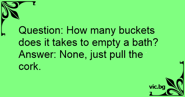 Question: How many buckets does it takes to empty a bath?