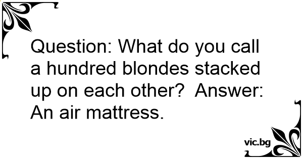 Question: What do you call a hundred blondes stacked up on each other? Answer: An air mattress.