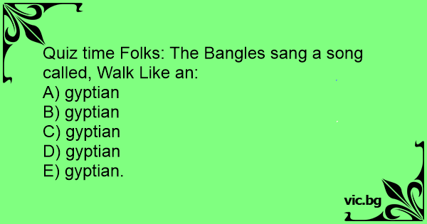 Quiz time Folks: The Bangles sang a song called, Walk Like an: