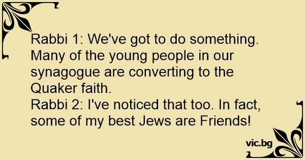 Rabbi 1: We've got to do something. Many of the young people in our synagogue are converting to the Quaker faith.