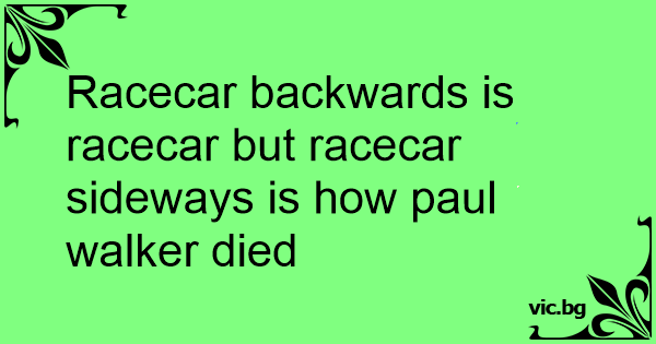 Racecar backwards is racecar but racecar sideways is how paul walker died