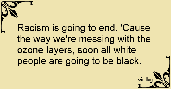 Racism is going to end. 'Cause the way we're messing with the ozone layers, soon all white people are going to be black.