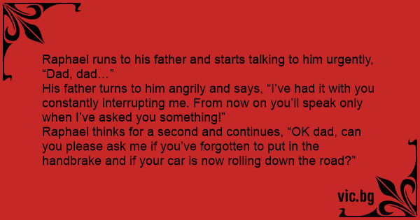 Raphael thinks for a second and continues, “OK dad, can you please ask me if you’ve forgotten to put in the handbrake and if your car is now rolling down the road?”