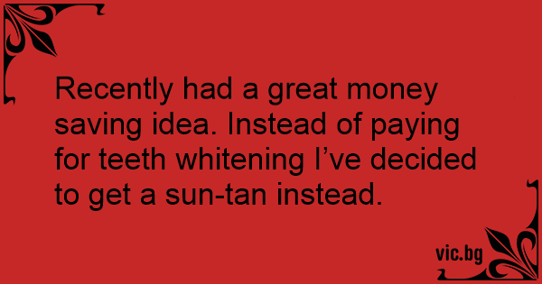Recently had a great money saving idea. Instead of paying for teeth whitening I’ve decided to get a sun-tan instead.