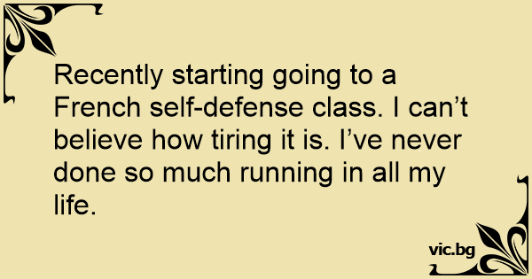 Recently starting going to a French self-defense class. I can’t believe how tiring it is. I’ve never done so much running in all my life.