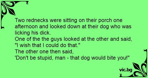 Two rednecks were sitting on their porch one afternoon and looked down at their dog who was licking his diск.