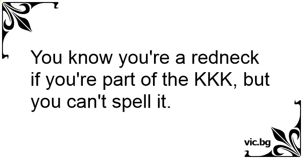 You know you're a redneck if you're part of the ККК, but you can't spell it.